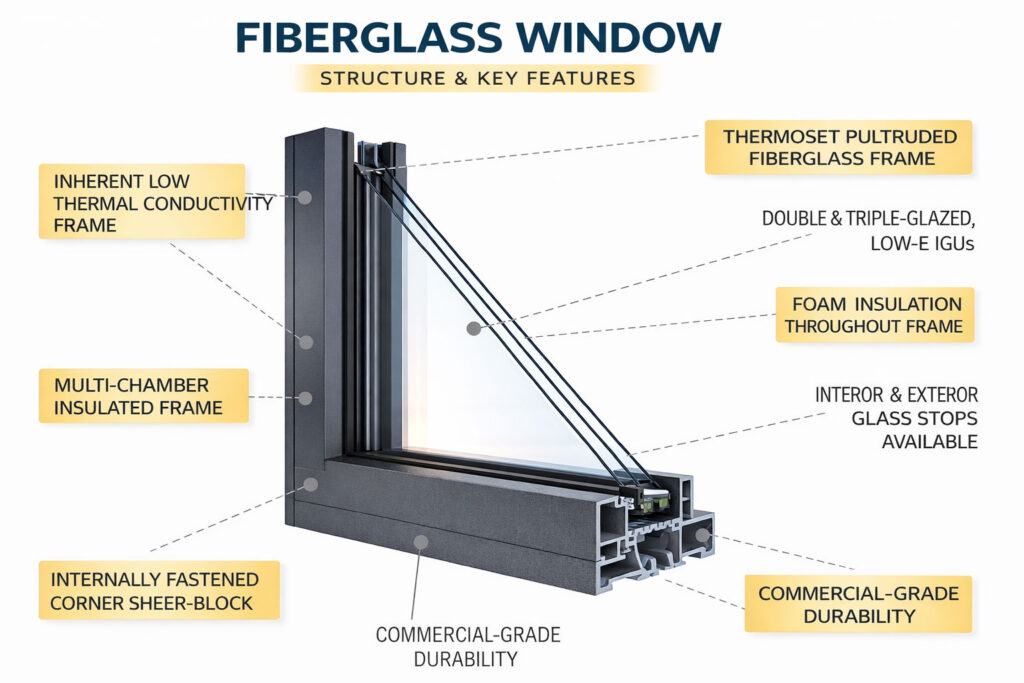 Fibre glass windows combine lightweight construction with exceptional strength and resistance to weathering. Perfect for projects requiring durability and energy efficiency, these windows are low-maintenance and designed to last, making them a smart choice for modern building requirements.